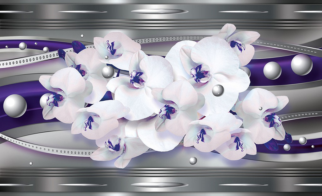 Відгуки Флізелінові 3D фотошпалери 312x219 см Фіолетовий та срібний візерунок з орхідеями (1566VEXXL)+клей