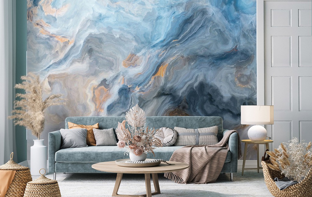 Флізелінові фотошпалери на стіну 312x219 см Імітація синього мармуру (14016VEXXL) +клей