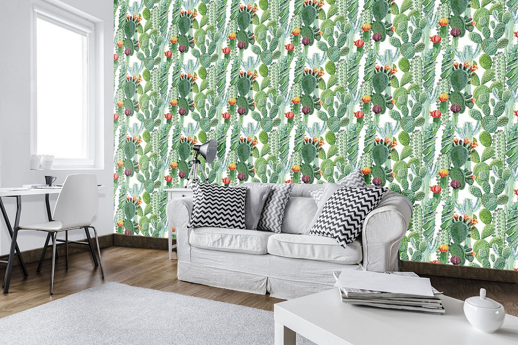 Квіти флізелінові фотошпалери 312x219 см Кактус на білому тлі (11082VEXXL) +клей