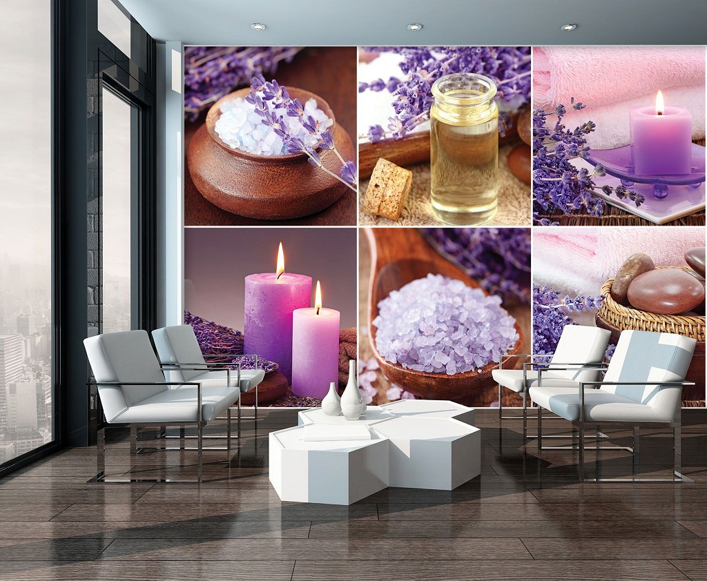 Відгуки Флізелінові фотошпалери квіти 312x219 см Колаж Спа Лаванда та Свічки (10451VEXXL)+клей
