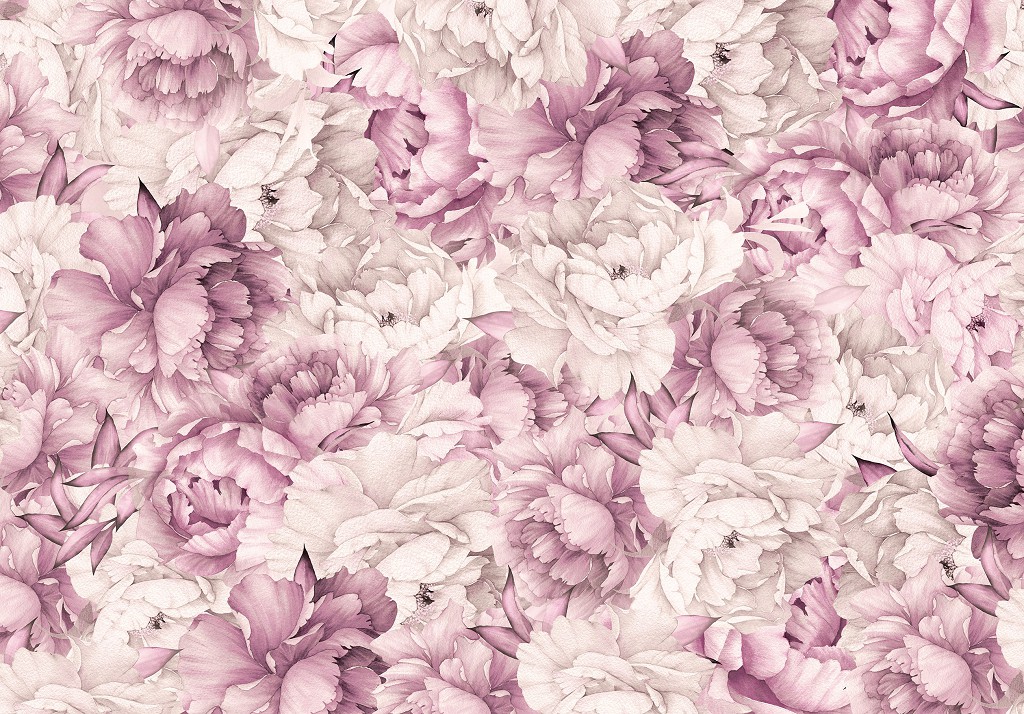 Вінтажні флізелінові фотошпалери 312x219 см Природа Квіти Темно-рожеві Півонії (14101VEXXL) +клей