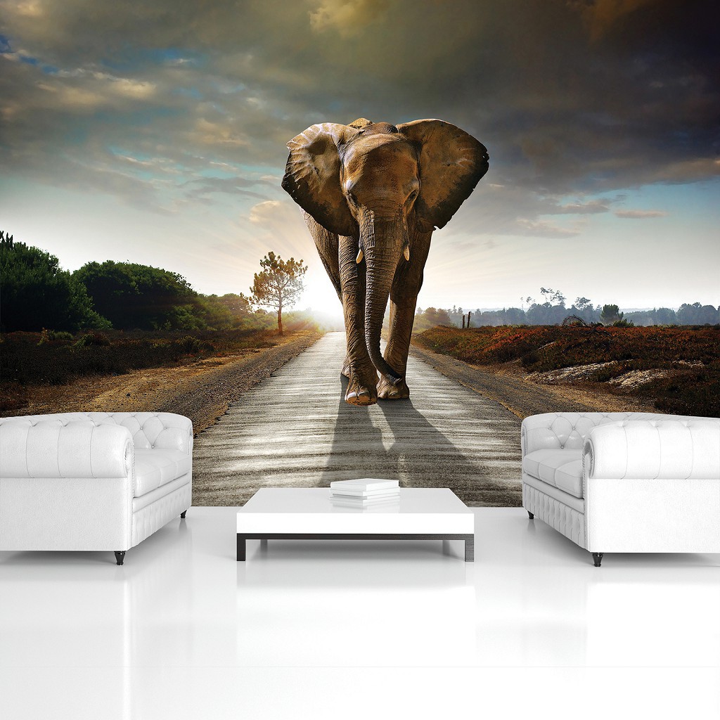 Відгуки Флізелінові фотошпалери на стіну 312x219 см 3D Слон на дорозі Тварини Природа Ландшафт (12616VEXXL)+клей