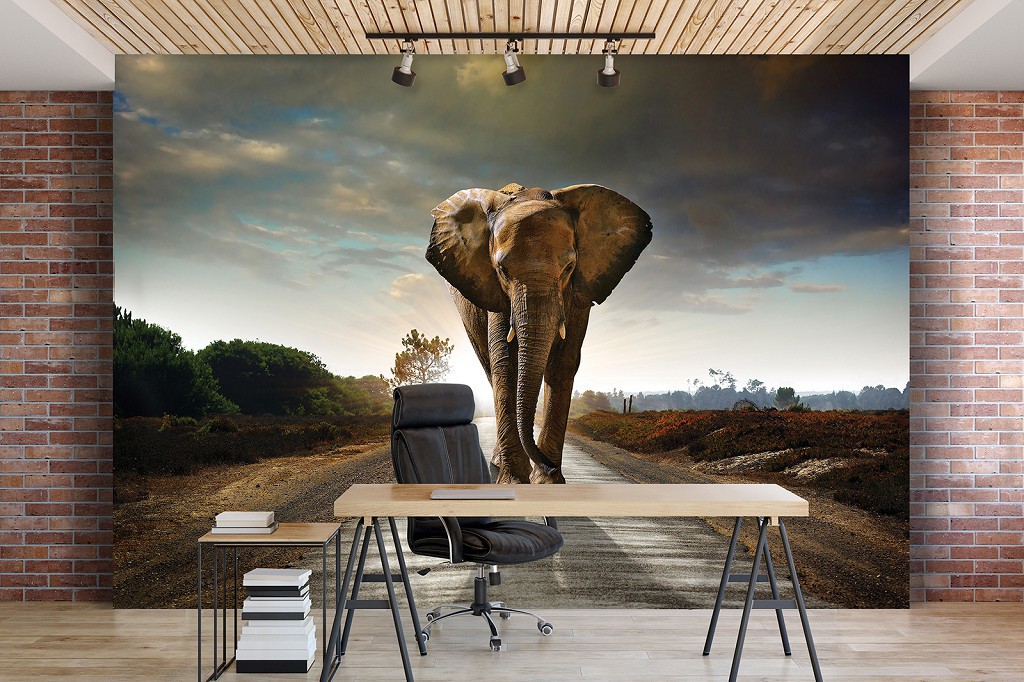 Флізелінові фотошпалери на стіну 312x219 см 3D Слон на дорозі Тварини Природа Ландшафт (12616VEXXL)+клей
