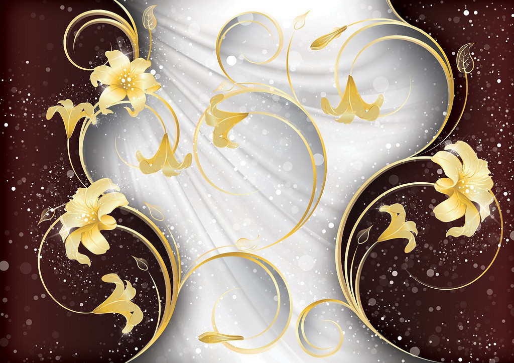 Популярні флізелінові фотошпалери квіти 312x219 см Жовті лілії на бордовому та білому тлі (2431VEXXL)+клей