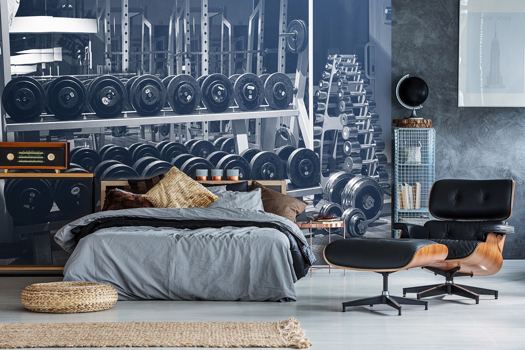 Флізелінові фотошпалери 368x254 см 3D тренажерний зал фітнес кросфіт гантелі (14588V8)+клей