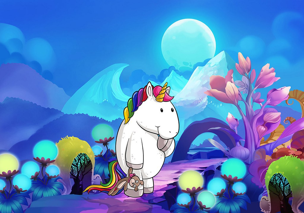 Фотошпалери флізелінові 368x254 см Єдиноріг на блакитному тлі (11880V8)+клей