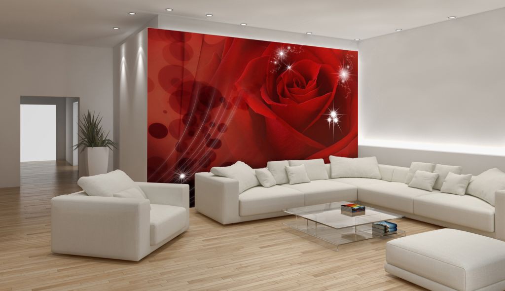 Модні флізелінові фотошпалери в зал Квіти 368x254 см Червона троянда з блискітками (8-010V8)+клей