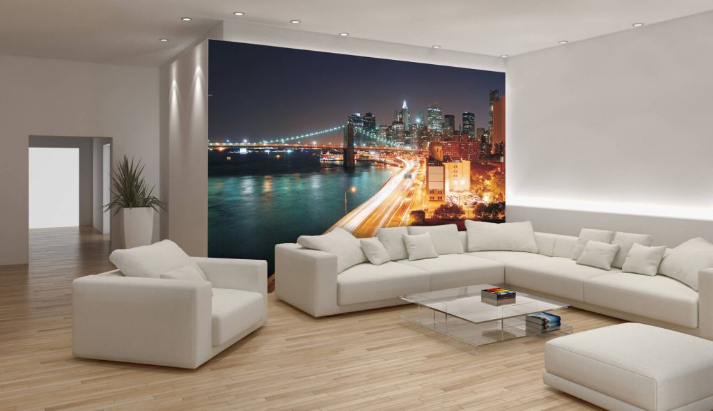 Зал з флізеліновими фотошпалерами 368x254 см Нічне місто Нью-Йорк (8-019V8)+клей