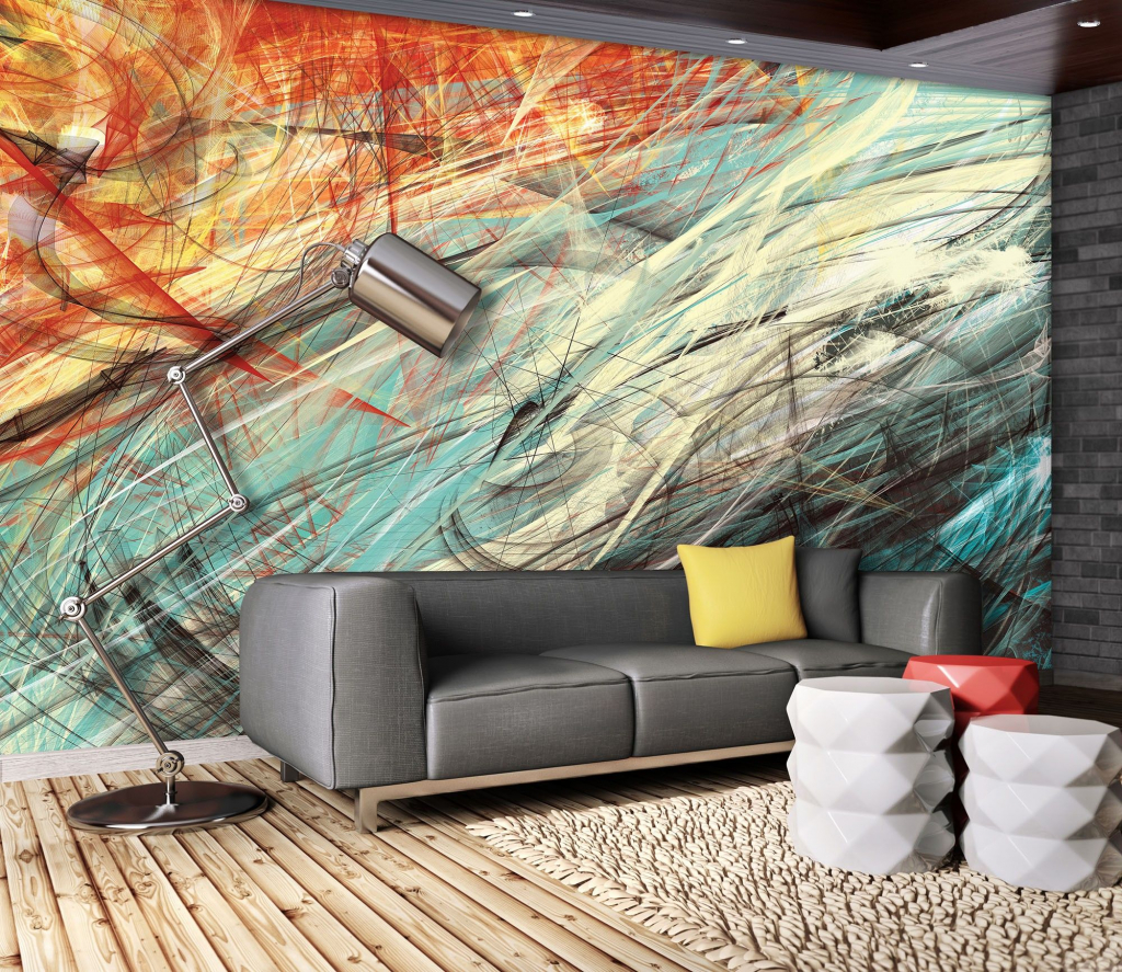 Відгуки Сучасні флізелінові фотошпалери на стіну 368x280 см Абстракція різкі різнокольорові мазки фарби (10004V10) +клей
