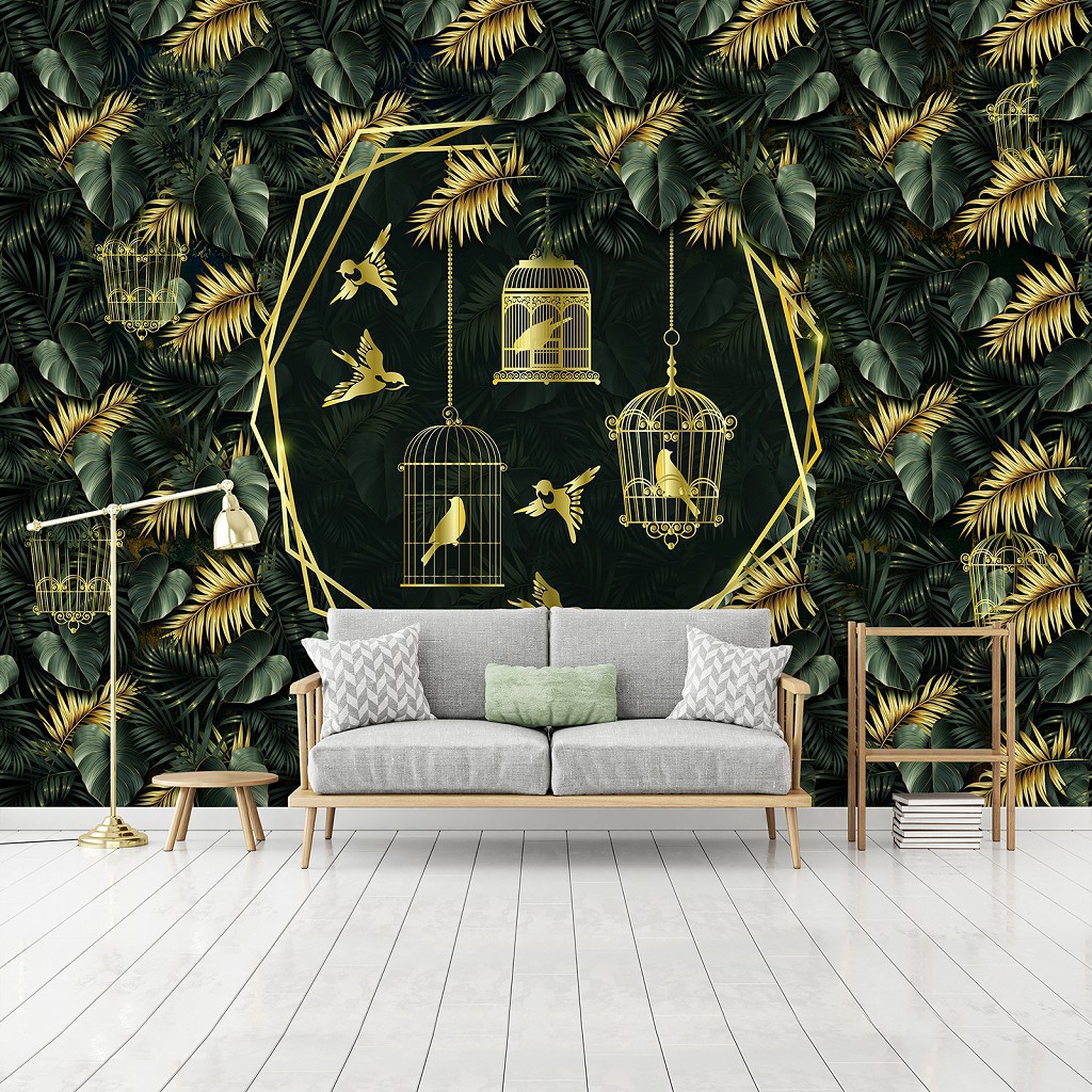 Флізелінові фотошпалери у спальню листя 368x280 см Птахи у клітинах (13338V10) +клей