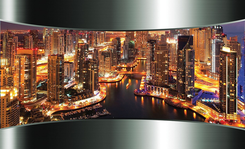 Флізелінові фотошпалери для спальні 416x254 см 3Д Вечірнє місто Дубай (2204VEXXXL)+клей