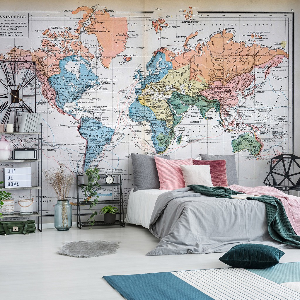 Флізелінові фотошпалери для кухні 416x254 см Фізична карта світу зроблена у Франції (14622VEXXXL)+клей