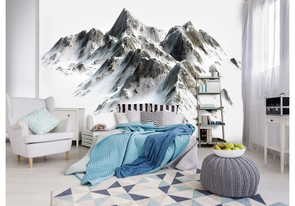 3 д флізелінові фотошпалери Краєвид Природа 416x254 см Снігові вершини гір на білому тлі (10631VEXXXL)+клей