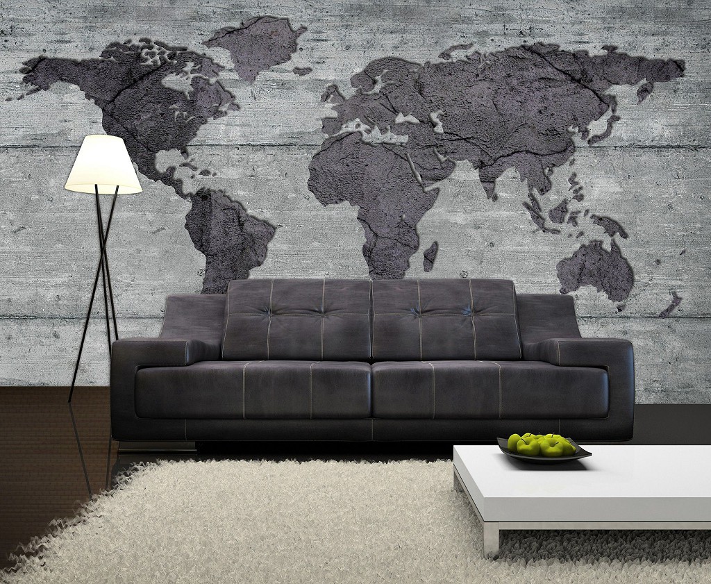 Флізелінові фотошпалери сірі 416x254 см Карта світу на бетоні (2854VEXXXL)+клей