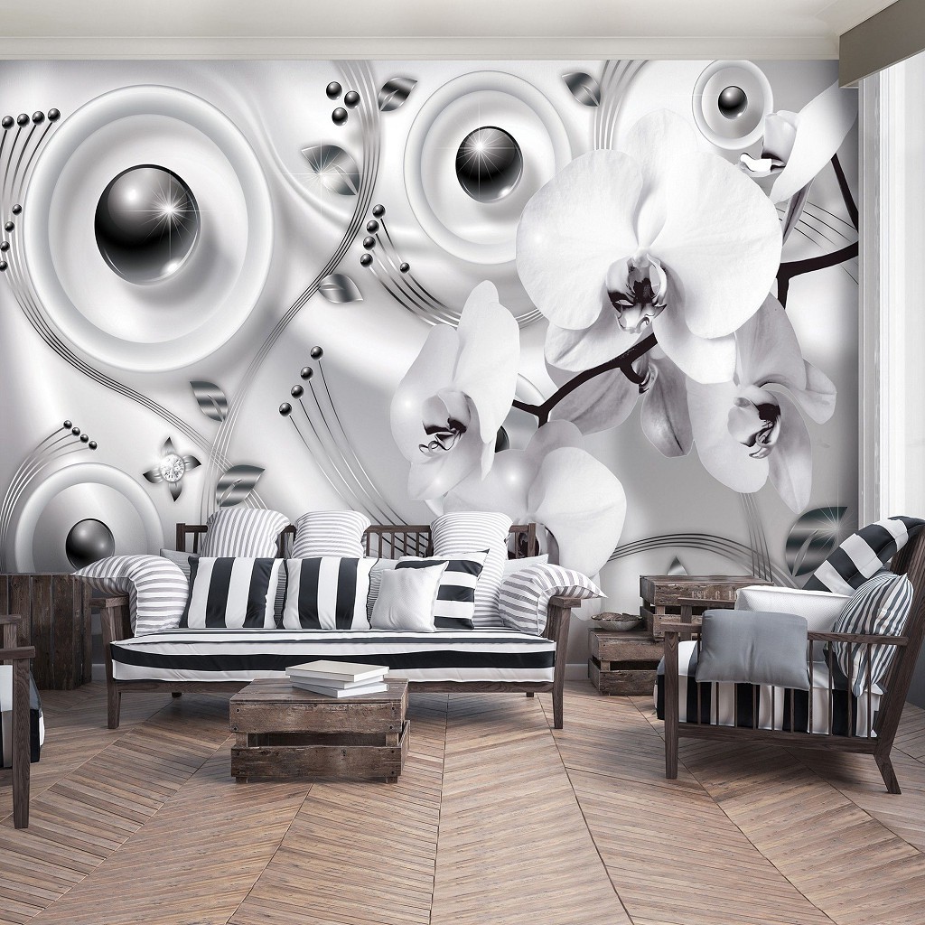 Флізелінові фотошпалери чорно-білі квіти 416x254 см Орхідеї та перли (3012VEXXXL)+клей