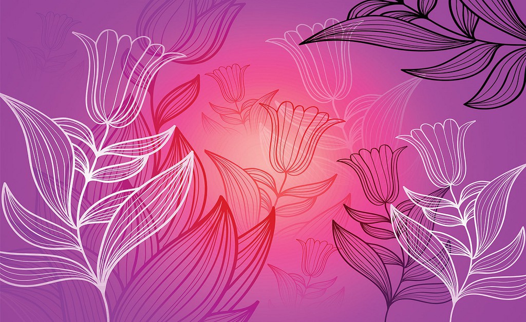 Над ліжком флізелінові фотошпалери до спальні 416x254 см Тюльпани на фіолетовому фоні (208VEXXXL)+клей