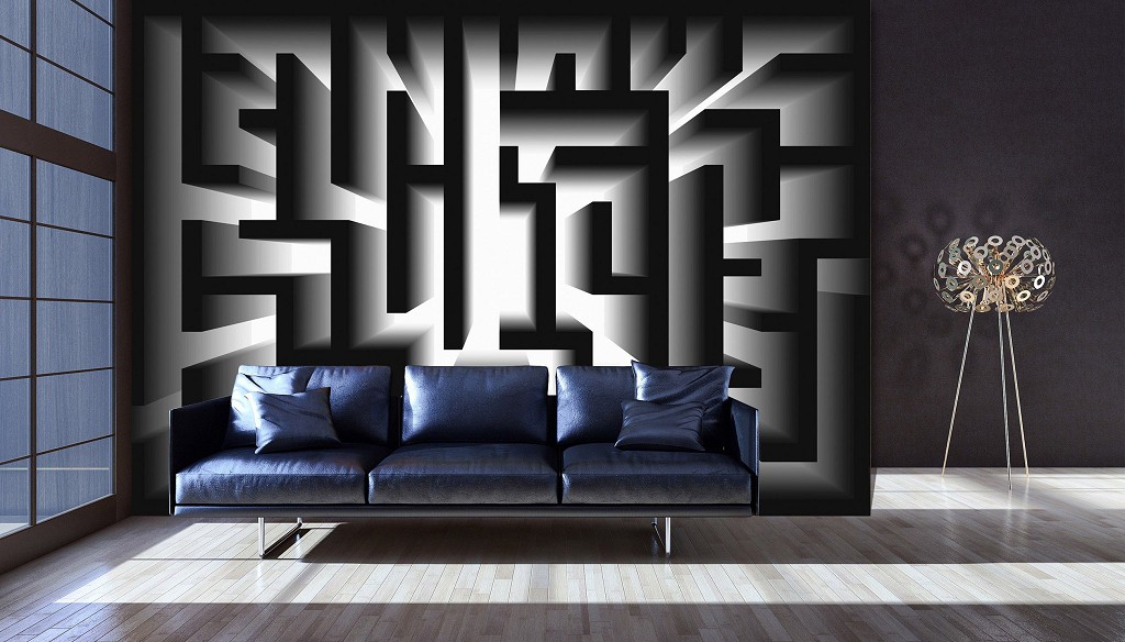 3 д флізелінові фотошпалери 416x290 см Геометричний чорно-білий лабіринт (10207VEXXXXL) +клей