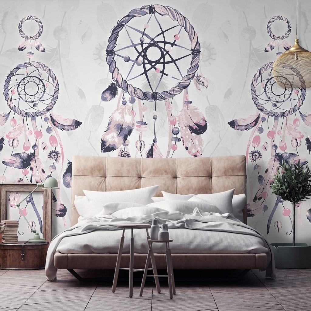 Відгуки Флізелінові фотошпалери мистецтво 416x290 см Темно рожевий ловець снів зображення на сірий фон (11283VEXXXXL) +клей