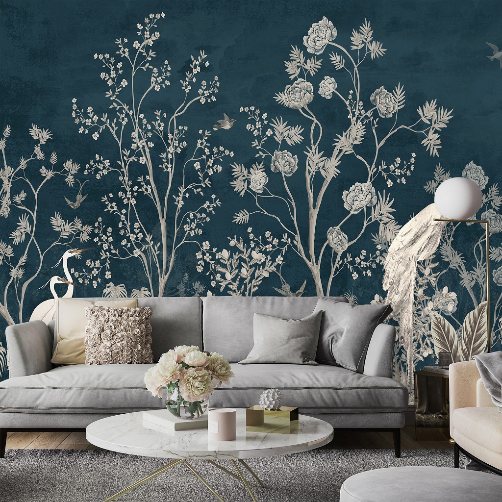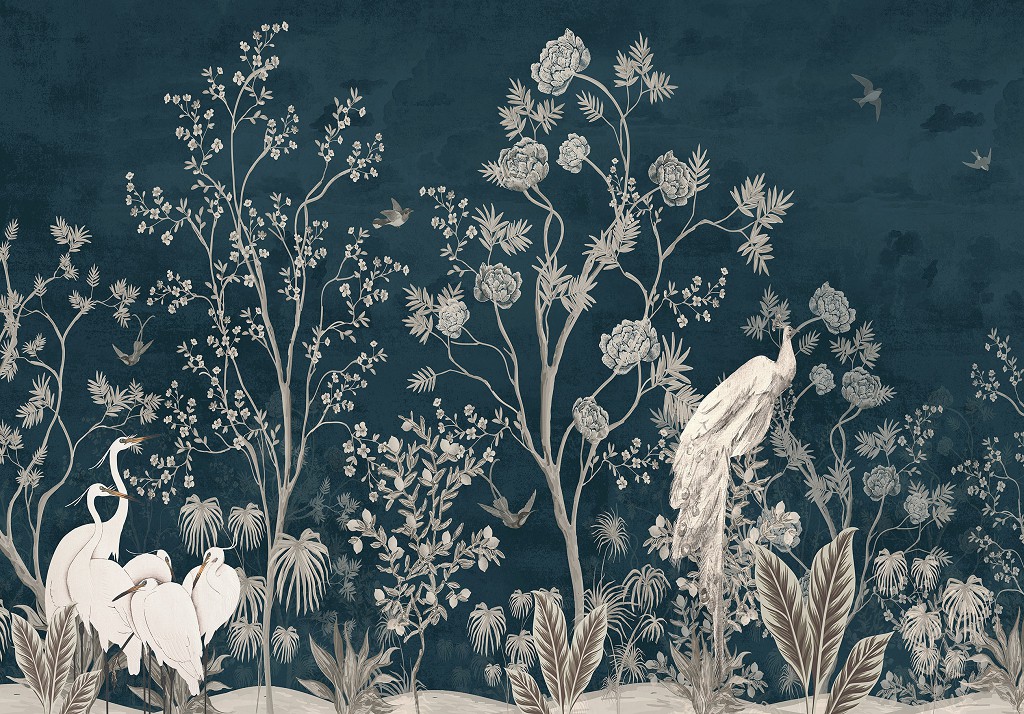 Відгуки Красива природа флізелінові фотошпалери 416x290 см Птахи - Білі журавлі та квіти на темному тлі (14607VEXXXXL)+клей