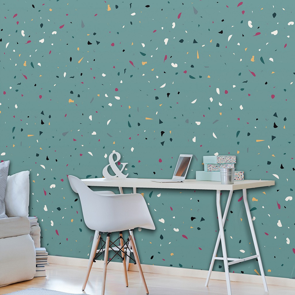 Флізелінові фотошпалери 416x290 см Текстура зеленого каменю терраццо (13474VEXXXXL) +клей
