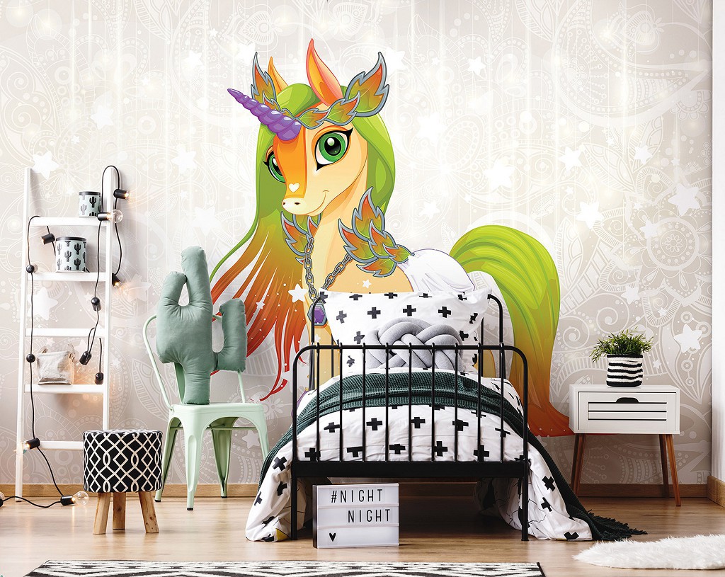 Флізелінові фотошпалери для дівчинки 520x318 см Дитяче - Чарівний єдиноріг (13887VEXXXXXL)+клей