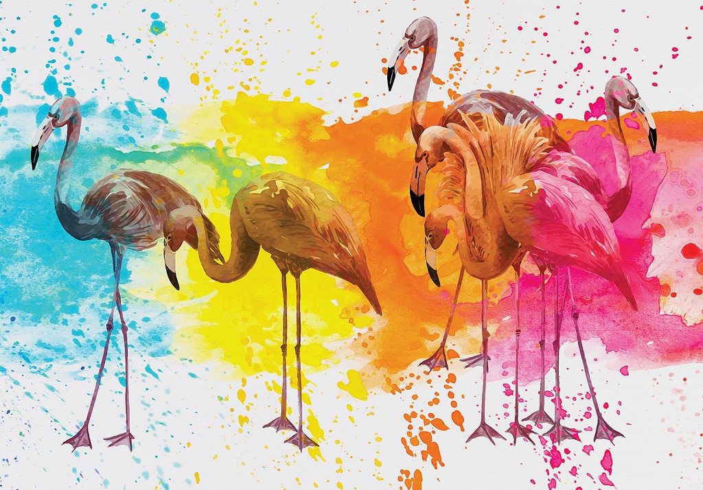 Відгуки Абстрактні флізелінові фотошпалери птахи 520x318 см Фламінго та бризки фарби (12273VEXXXXXL) +клей