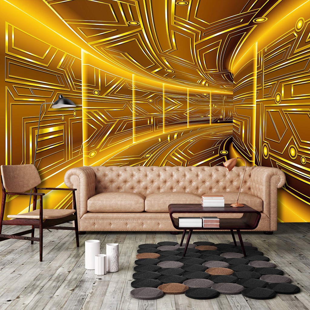Флізелінові фотошпалери 3д розширювальні 520x318 см Модерний тунель у жовтому кольорі (10082VEXXXXXL) +клей