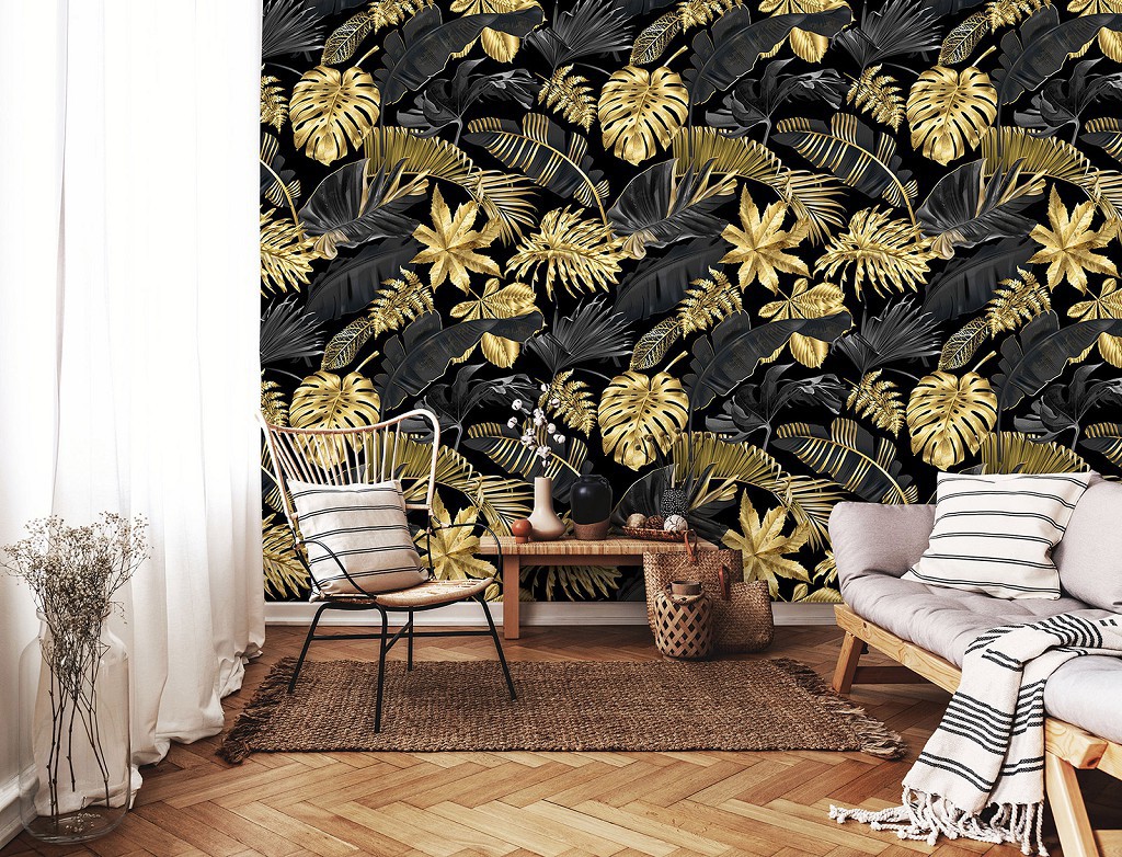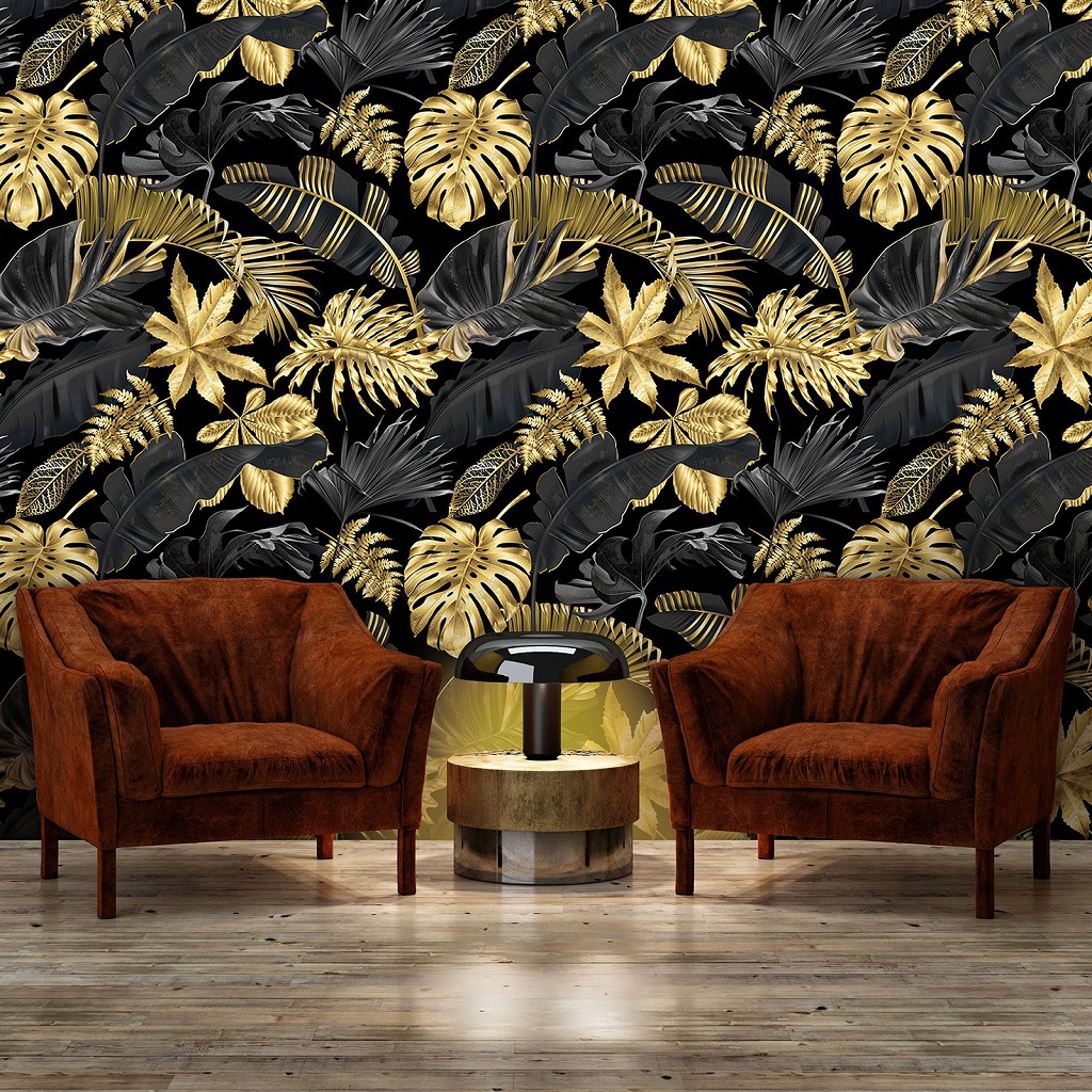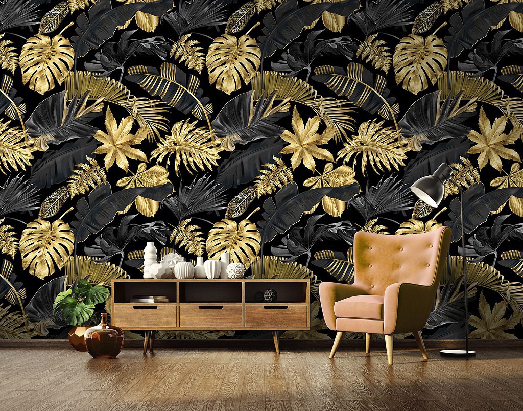 Флізелінові фотошпалери в інтер'єрі 520x318 см Золоте та чорне листя (13954VEXXXXXL) +клей