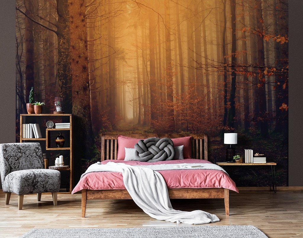 Природа флізелінові 3д фотошпалери Осінній ліс (13918V)+клей