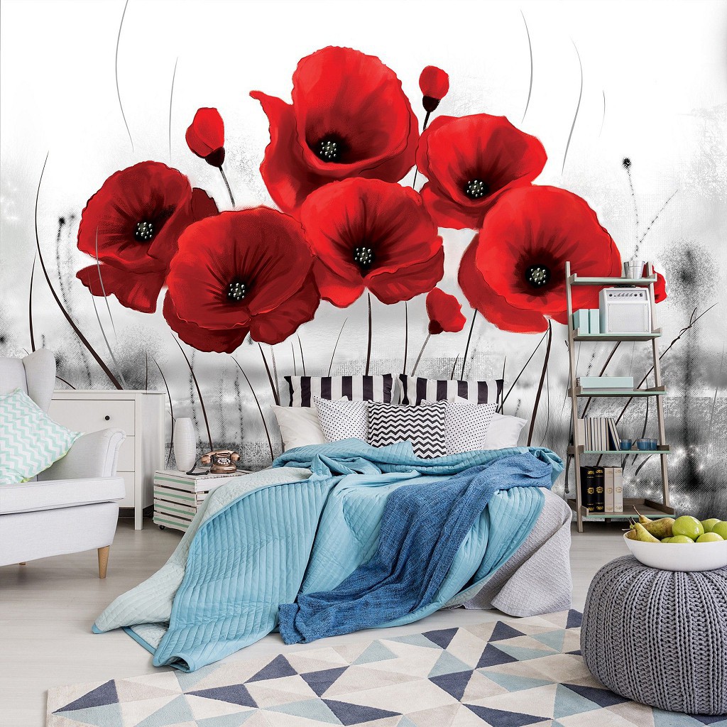 Фотошпалери 3D 368х254 см Червоні маки на сірому фоні (2254.20665 ) надруковані на щільному папері (BlueBack) і складаються з 4-х вертикальних частин. Ширина фотошпалер 368 см, висота - 254 см. Виріб комплектується клеєм і інструкцією. Фото шпалери важать 1,5 кг і мають щільність 120 г / м2. Завдяки ефекту 3D Ваша кімната візуально збільшиться. Фотошпалери на яких зображена квіти це завжди дуже красиво і романтично.