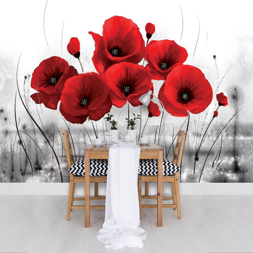 Відгуки Фото шпалери квіти 368х254 см Червоні маки на чорно-білому тлі (2254P8)+клей