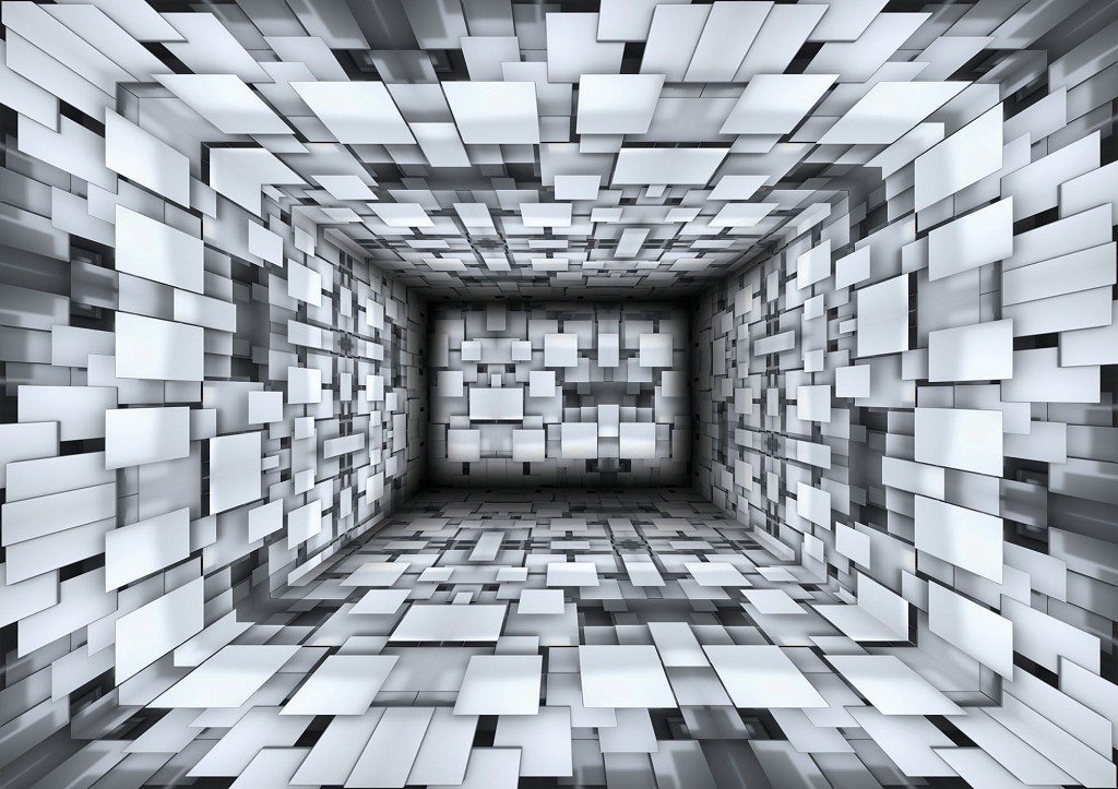 Відгуки Флізелінові фото шпалери 3д 254x184 см Сірий тунель із квадратів (2908V4)+клей