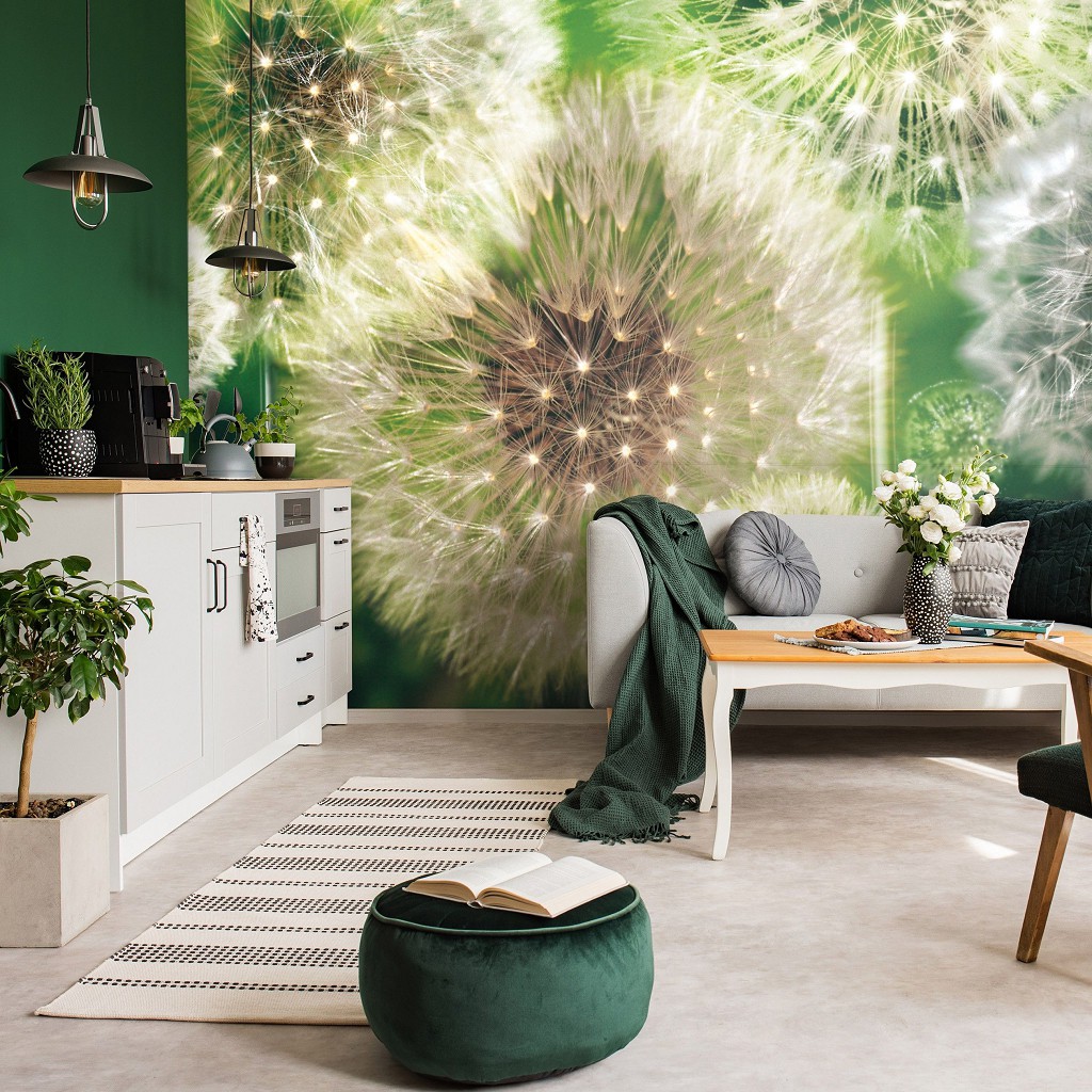 Відгуки Флізелінові 3D фотошпалери квіти 368x254 см Багато кульбаб на зеленому тлі (056V8)+клей