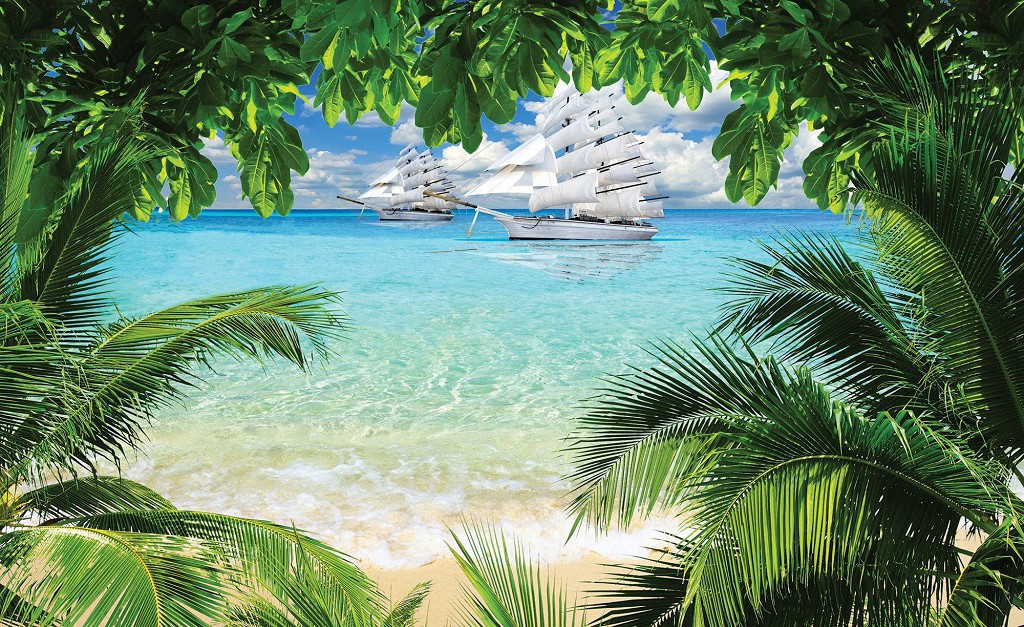 Відгуки Флізелінові 3d фото шпалери Природи Море 368x254 см Корабель у бірюзовому океані (2598V8)+клей